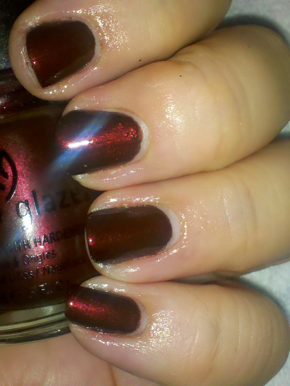 Polish is a little on the thin side, so the first coat was a WTF moment. Second coat was...unbelievable. I only added a third coat because I was a little too impatient and polish dragged a little. This girl is GORGEOUS!!! Definitely not a summer color, but for Fall & Winter? YES please. It's a blackened burgundy that has a deep glow to it - I don't know how else to describe it. It kind of comes through in the photo (amazingly enough), but still oh so much better in person. I just love these blackened colors, and this one does not disappoint! Honestly, I bought this only for the challenge, and I am so happy I did!
